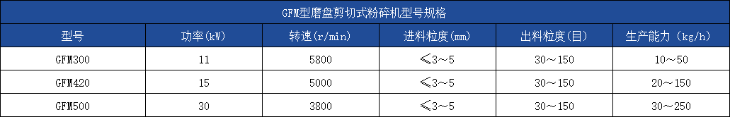 GFM型磨盘剪切式粉碎机磨盘采用特殊工艺制造,磨盘间隙可调,能耗低,出料粒度均匀,可用于常温状态下的塑料、橡胶、皮革等韧性物料粉碎。